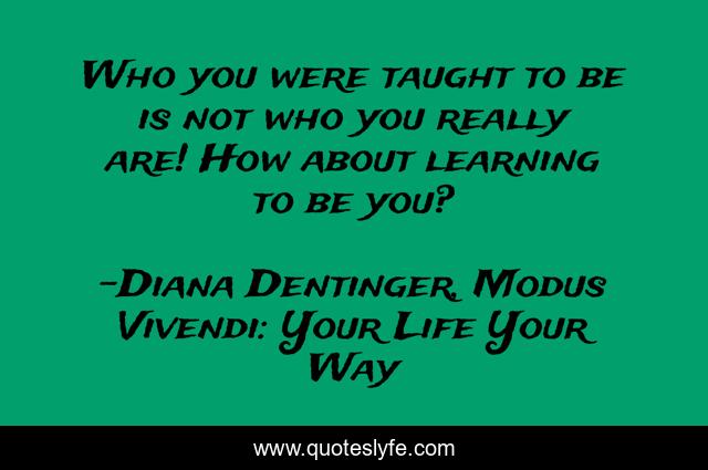 "Diana Dentinger, Modus Vivendi: Your Life Your Way Quotes." Quoteslyfe.com, 2025. Sat. 06 Dec. 2025. <https://www.quoteslyfe.com/quote/Who-you-were-taught-to-be-is-14715>.