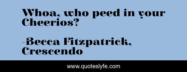 "Becca Fitzpatrick, Crescendo Quotes." Quoteslyfe.com, 2025. Sat. 06 Dec. 2025. <https://www.quoteslyfe.com/quote/Whoa-who-peed-in-your-Cheerios-40307>.