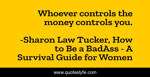 "Sharon Law Tucker, How to Be a BadAss - A Survival Guide for Women Quotes." Quoteslyfe.com, 2025. Sat. 06 Dec. 2025. <https://www.quoteslyfe.com/quote/Whoever-controls-the-money-controls-you-120528>.