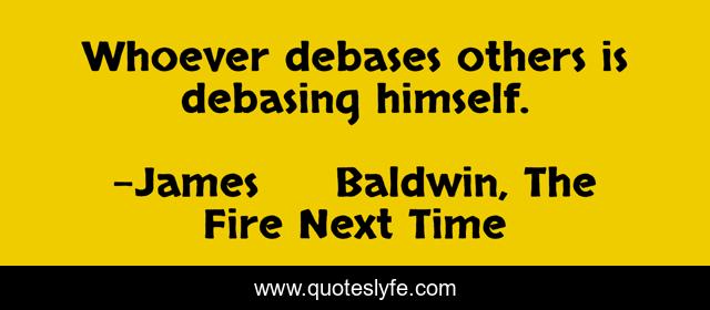 This page presents the quote "Whoever debases others is debasing himself.". Author of this quote is James Baldwin, The Fire Next Time. This quote is about life, love, racism, affection,.