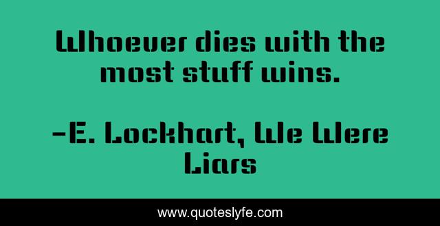This page presents the quote "Whoever dies with the most stuff wins.". Author of this quote is E. Lockhart, We Were Liars. This quote is about win, life, death, materialism,.