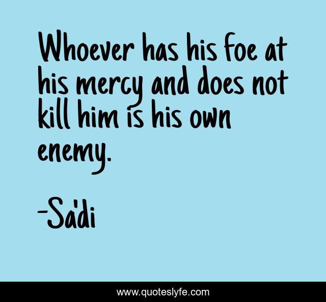 This page presents the quote "Whoever has his foe at his mercy and does not kill him is his own enemy.". Author of this quote is Sa'di. .