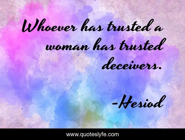 This page presents the quote "Whoever has trusted a woman has trusted deceivers.". Author of this quote is Hesiod. This quote is about woman, trusted, whoever,.