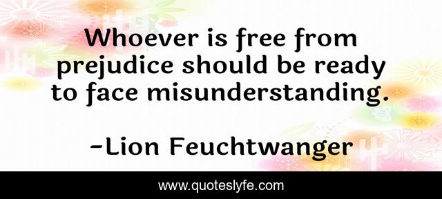 This page presents the quote "Whoever is free from prejudice should be ready to face misunderstanding.". Author of this quote is Lion Feuchtwanger. .