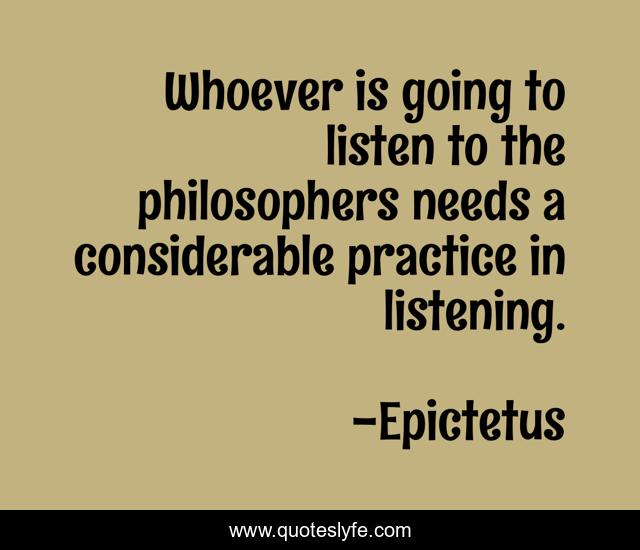 This page presents the quote "Whoever is going to listen to the philosophers needs a considerable practice in listening.". Author of this quote is Epictetus. This quote is about philosophy, listening,.
