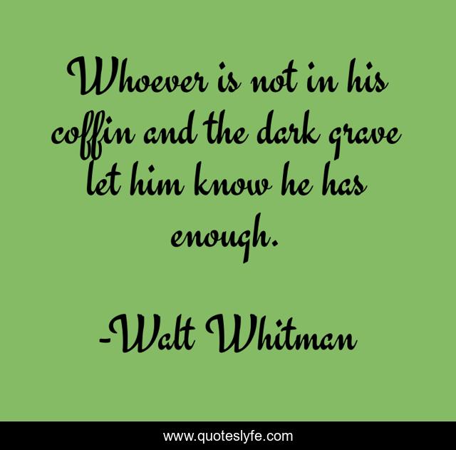 This page presents the quote "Whoever is not in his coffin and the dark grave let him know he has enough.". Author of this quote is Walt Whitman. .