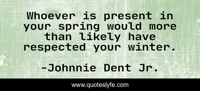 This page presents the quote "Whoever is present in your spring would more than likely have respected your winter.". Author of this quote is Johnnie Dent Jr.. This quote is about perseverance, winning-and-losing, friendship, team-spirit, together, winning, together-we-rise, long-suffering, long-standing,.