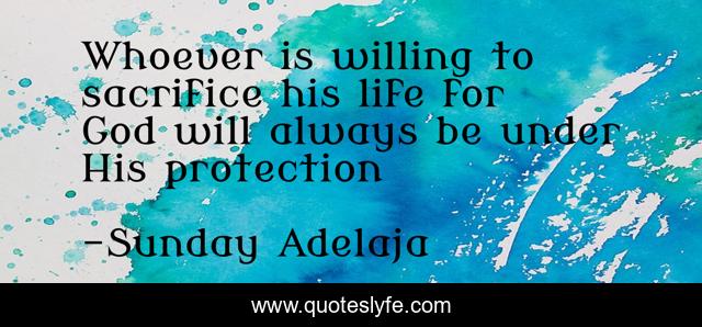 This page presents the quote "Whoever is willing to sacrifice his life for God will always be under His protection". Author of this quote is Sunday Adelaja. This quote is about sacrifice, life, god-s-protection,.