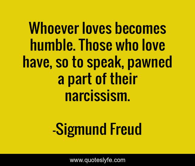 This page presents the quote "Whoever loves becomes humble. Those who love have, so to speak, pawned a part of their narcissism.". Author of this quote is Sigmund Freud. This quote is about life, love, change, affection, personality,.