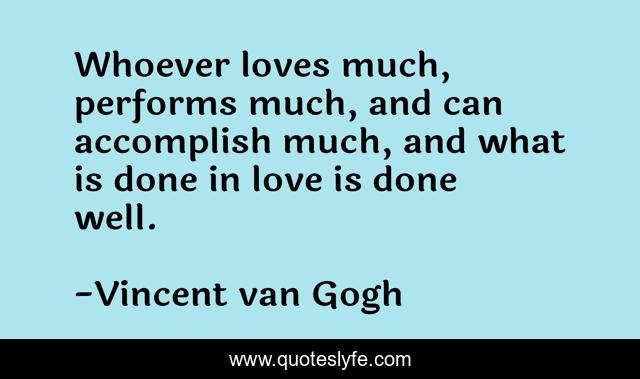 "Vincent van Gogh Quotes." Quoteslyfe.com, 2025. Sat. 06 Dec. 2025. <https://www.quoteslyfe.com/quote/Whoever-loves-much-performs-much-and-can-1519>.