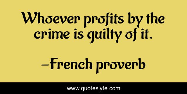 This page presents the quote "Whoever profits by the crime is guilty of it.". Author of this quote is French proverb. .