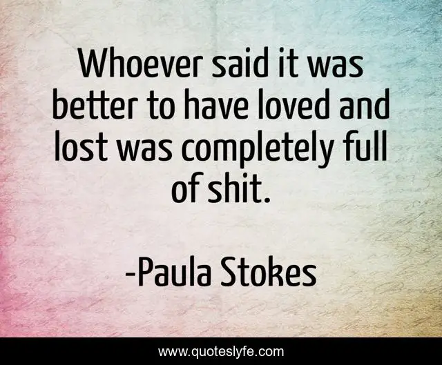 This page presents the quote "Whoever said it was better to have loved and lost was completely full of shit.". Author of this quote is Paula Stokes. This quote is about list-love, loss,.