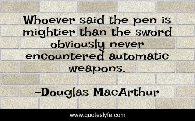 "Douglas MacArthur Quotes." Quoteslyfe.com, 2025. Tue. 09 Dec. 2025. <https://www.quoteslyfe.com/quote/Whoever-said-the-pen-is-mightier-than-6177>.