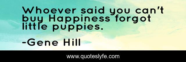 This page presents the quote "Whoever said you can't buy Happiness forgot little puppies.". Author of this quote is Gene Hill. This quote is about animals, dogs,.