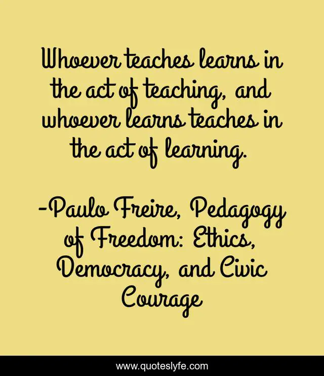 "Paulo Freire, Pedagogy of Freedom: Ethics, Democracy, and Civic Courage Quotes." Quoteslyfe.com, 2025. Fri. 05 Dec. 2025. <https://www.quoteslyfe.com/quote/Whoever-teaches-learns-in-the-act-of-116872>.