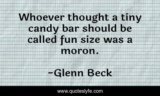 This page presents the quote "Whoever thought a tiny candy bar should be called fun size was a moron.". Author of this quote is Glenn Beck. This quote is about food, labels, candy,.