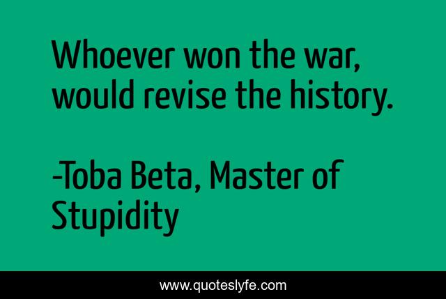 This page presents the quote "Whoever won the war, would revise the history.". Author of this quote is Toba Beta, Master of Stupidity. This quote is about win, war, revise, history,.