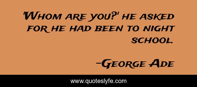 This page presents the quote "'Whom are you?' he asked for he had been to night school.". Author of this quote is George Ade. .