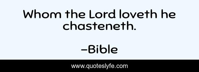 This page presents the quote "Whom the Lord loveth he chasteneth.". Author of this quote is Bible. .