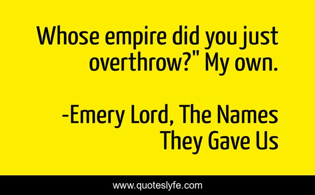 "Emery Lord, The Names They Gave Us Quotes." Quoteslyfe.com, 2025. Fri. 05 Dec. 2025. <https://www.quoteslyfe.com/quote/Whose-empire-did-you-just-overthrow-My-59794>.