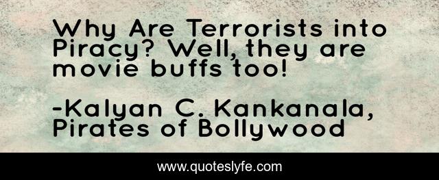 This page presents the quote "Why Are Terrorists into Piracy? Well, they are movie buffs too!". Author of this quote is Kalyan C. Kankanala, Pirates of Bollywood. This quote is about they-like-movies, pirates, piracy, legal, copyrights, bollywood, thriller,.