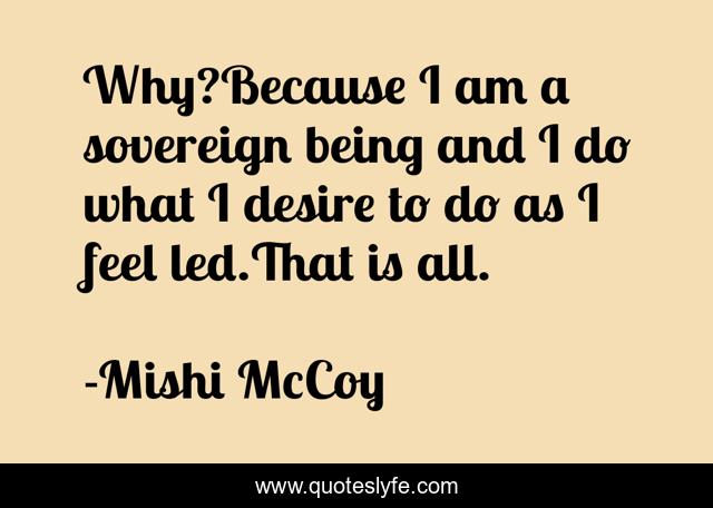 "Mishi McCoy Quotes." Quoteslyfe.com, 2025. Sat. 06 Dec. 2025. <https://www.quoteslyfe.com/quote/Why-Because-I-am-a-sovereign-being-54722>.