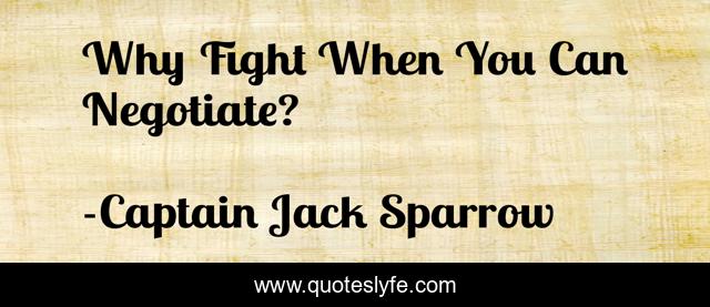 This page presents the quote "Why Fight When You Can Negotiate?". Author of this quote is Captain Jack Sparrow. This quote is about pirates-of-the-caribbean, pirates, captain-jack-sparrow, captain-jack, witty, witty-comeback, witty-comebacks,.