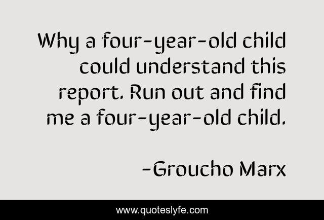 This page presents the quote "Why a four-year-old child could understand this report. Run out and find me a four-year-old child.". Author of this quote is Groucho Marx. .
