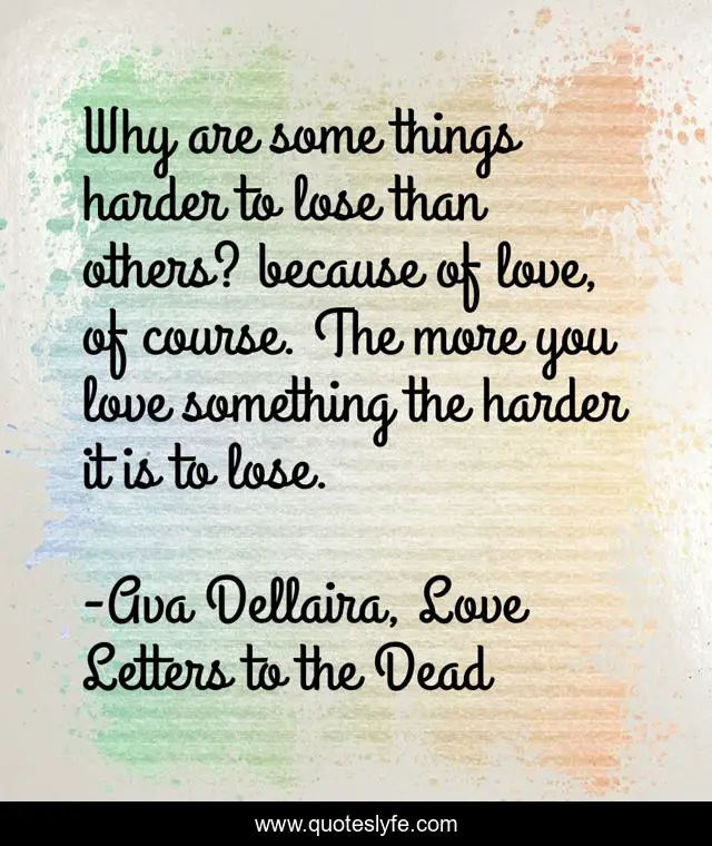 This page presents the quote "Why are some things harder to lose than others? because of love, of course. The more you love something the harder it is to lose.". Author of this quote is Ava Dellaira, Love Letters to the Dead. This quote is about love, lost, affection,.