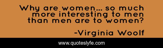 This page presents the quote "Why are women... so much more interesting to men than men are to women?". Author of this quote is Virginia Woolf. This quote is about men, rescuing, women,.
