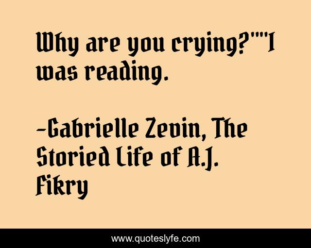 "Gabrielle Zevin, The Storied Life of A.J. Fikry Quotes." Quoteslyfe.com, 2025. Fri. 05 Dec. 2025. <https://www.quoteslyfe.com/quote/Why-are-you-crying-I-was-reading-66968>.