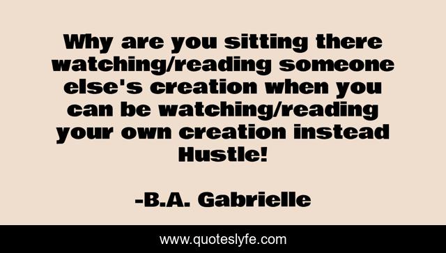 This page presents the quote "Why are you sitting there watching/reading someone else's creation when you can be watching/reading your own creation instead Hustle!". Author of this quote is B.A. Gabrielle. .