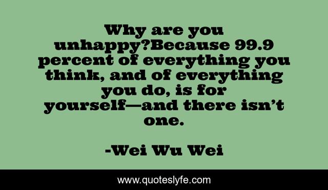 "Wei Wu Wei Quotes." Quoteslyfe.com, 2025. Mon. 08 Dec. 2025. <https://www.quoteslyfe.com/quote/Why-are-you-unhappy-Because-99-9-17015>.
