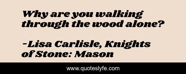 "Lisa Carlisle, Knights of Stone: Mason Quotes." Quoteslyfe.com, 2025. Sun. 07 Dec. 2025. <https://www.quoteslyfe.com/quote/Why-are-you-walking-through-the-wood-131865>.