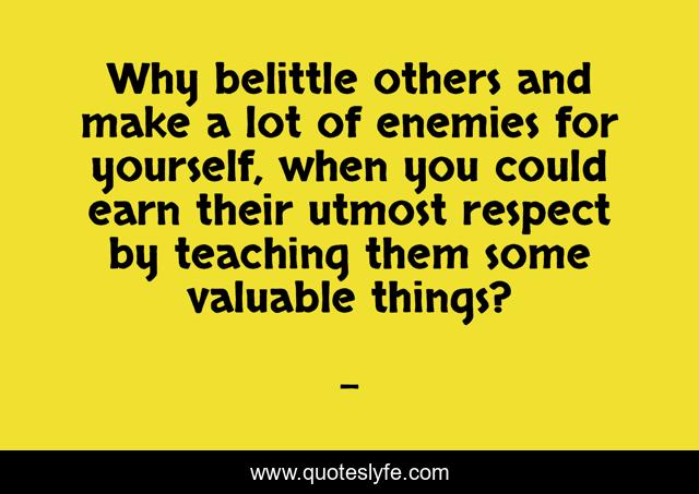 " Quotes." Quoteslyfe.com, 2025. Sat. 06 Dec. 2025. <https://www.quoteslyfe.com/quote/Why-belittle-others-and-make-a-lot-170857>.