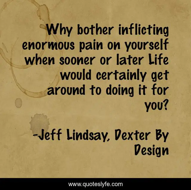 "Jeff Lindsay, Dexter By Design Quotes." Quoteslyfe.com, 2025. Fri. 05 Dec. 2025. <https://www.quoteslyfe.com/quote/Why-bother-inflicting-enormous-pain-on-yourself-144741>.