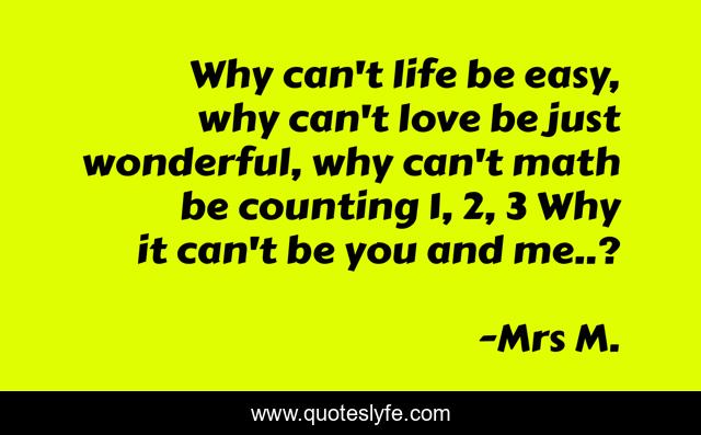 This page presents the quote "Why can't life be easy, why can't love be just wonderful, why can't math be counting 1, 2, 3 Why it can't be you and me..?". Author of this quote is Mrs M.. .