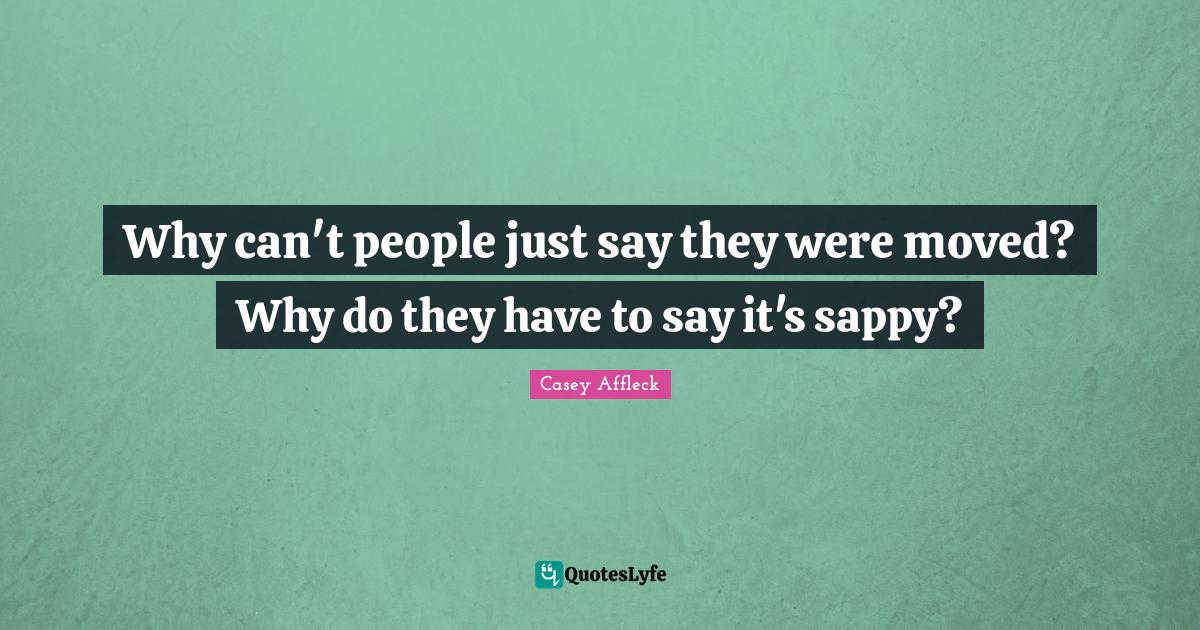 This page presents the quote "Why can't people just say they were moved? Why do they have to say it's sappy?". Author of this quote is Casey Affleck. This quote is about people, moved,.