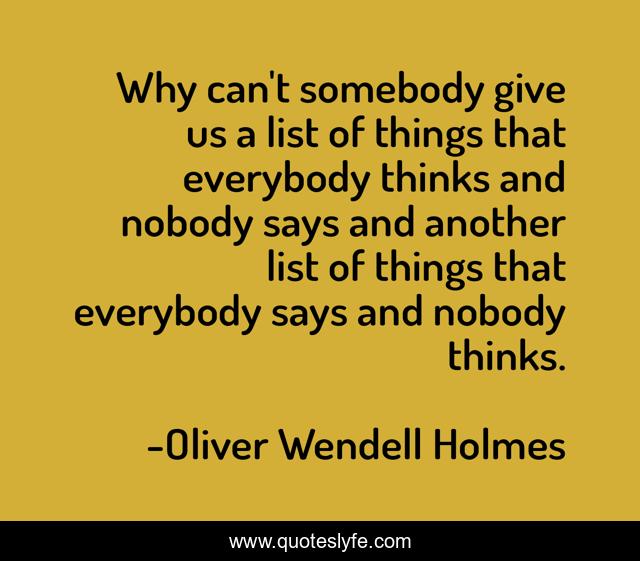 "Oliver Wendell Holmes Quotes." Quoteslyfe.com, 2025. Sat. 06 Dec. 2025. <https://www.quoteslyfe.com/quote/Why-can-t-somebody-give-us-a-272199>.