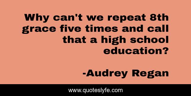 This page presents the quote "Why can't we repeat 8th grace five times and call that a high school education?". Author of this quote is Audrey Regan. This quote is about memories, school, education, eighth-grade, high-school,.