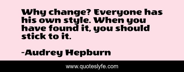 This page presents the quote "Why change? Everyone has his own style. When you have found it, you should stick to it.". Author of this quote is Audrey Hepburn. This quote is about style, people,.