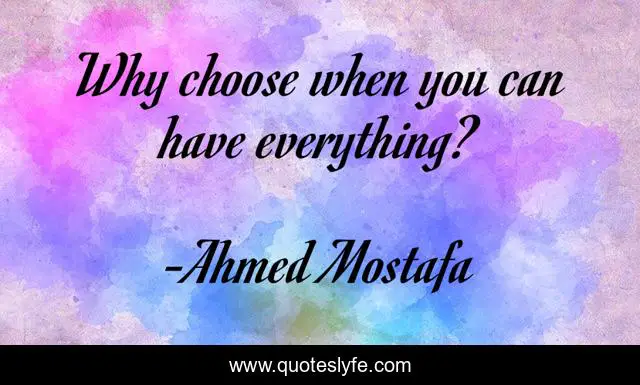"Ahmed Mostafa Quotes." Quoteslyfe.com, 2025. Sat. 06 Dec. 2025. <https://www.quoteslyfe.com/quote/Why-choose-when-you-can-have-everything-174726>.