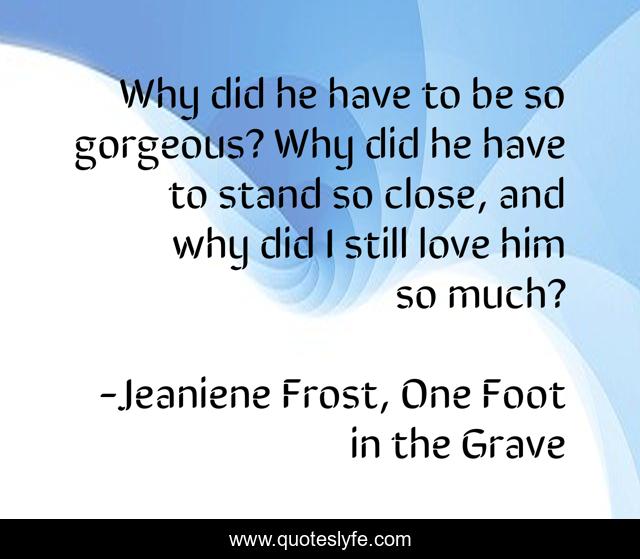 This page presents the quote "Why did he have to be so gorgeous? Why did he have to stand so close, and why did I still love him so much?". Author of this quote is Jeaniene Frost, One Foot in the Grave. This quote is about humor, love, vampire, affection,.