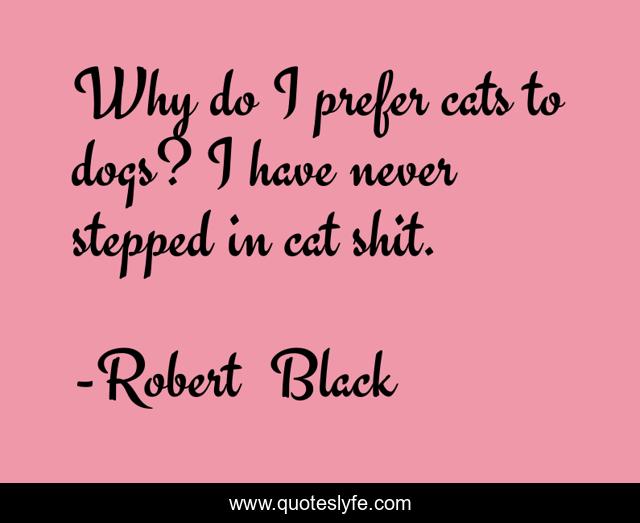 This page presents the quote "Why do I prefer cats to dogs? I have never stepped in cat shit.". Author of this quote is Robert Black. This quote is about dog-shit, cats, dogs, cat-shit,.