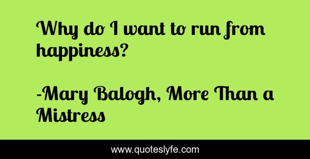 This page presents the quote "Why do I want to run from happiness?". Author of this quote is Mary Balogh, More Than a Mistress. This quote is about run, happiness,.
