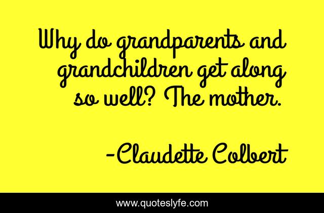 This page presents the quote "Why do grandparents and grandchildren get along so well? The mother.". Author of this quote is Claudette Colbert. This quote is about why, grandchildren, mother,.