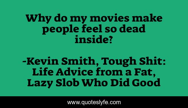 This page presents the quote "Why do my movies make people feel so dead inside?". Author of this quote is Kevin Smith, Tough Shit: Life Advice from a Fat, Lazy Slob Who Did Good. .
