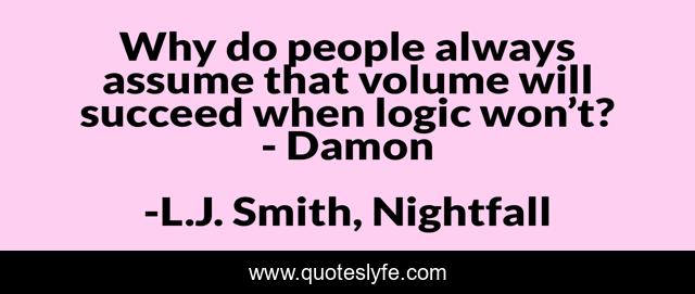 This page presents the quote "Why do people always assume that volume will succeed when logic won’t? - Damon". Author of this quote is L.J. Smith, Nightfall. This quote is about argument, vampire, fiction, romance, damon, elena,.