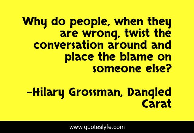 This page presents the quote "Why do people, when they are wrong, twist the conversation around and place the blame on someone else?". Author of this quote is Hilary Grossman, Dangled Carat. This quote is about human-nature, life, dating, musing, self-realization,.