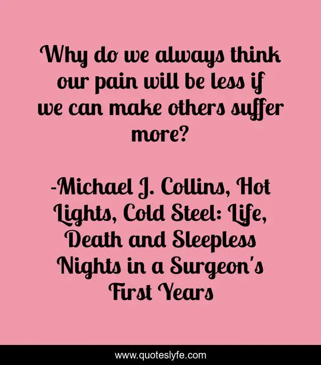 "Michael J. Collins, Hot Lights, Cold Steel: Life, Death and Sleepless Nights in a Surgeon's First Years Quotes." Quoteslyfe.com, 2025. Mon. 08 Dec. 2025. <https://www.quoteslyfe.com/quote/Why-do-we-always-think-our-pain-242999>.